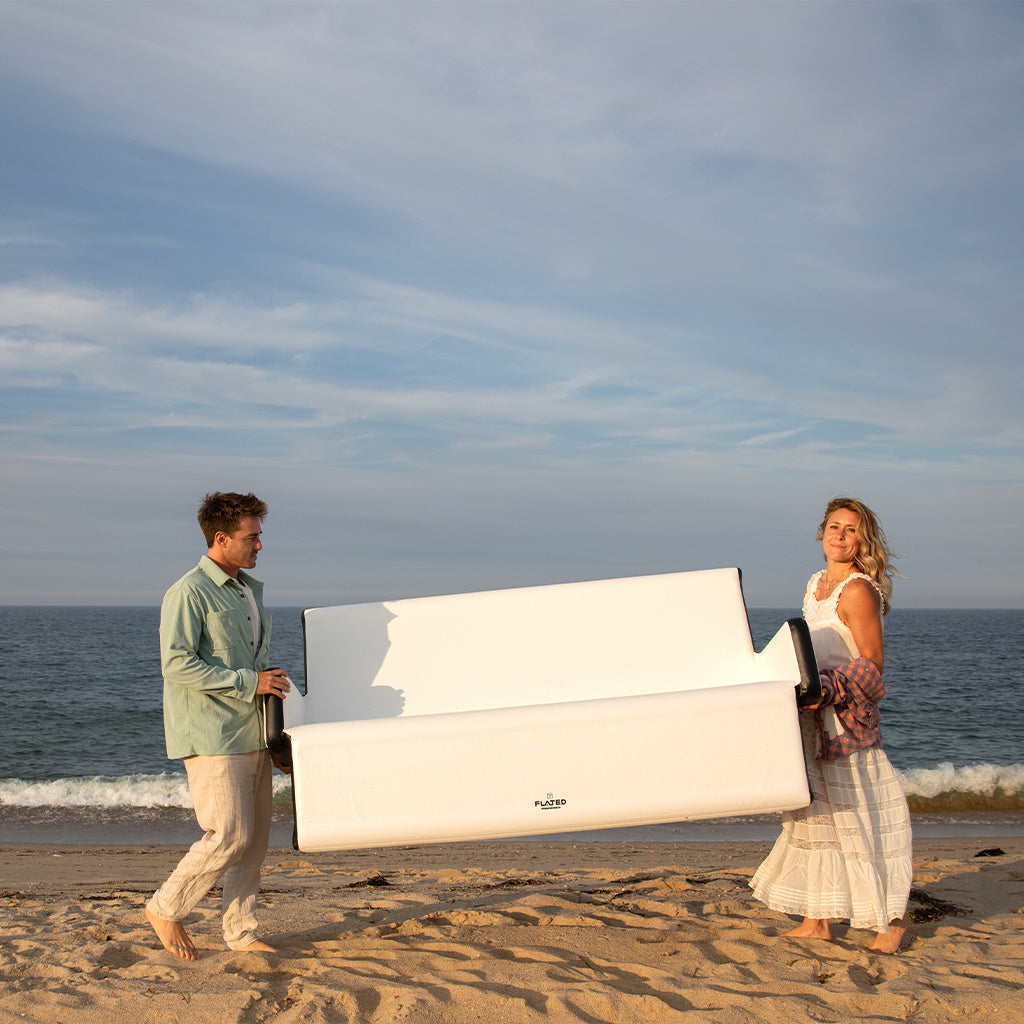 The FLATED® Air-Exec Couch is your go-anywhere, sit-anywhere solution for comfort in the wild or at home. This inflatable couch brings the chill wherever you do—perfect for outdoor camping trips, poolside lounging, beach days, or backyard hangouts. Made with ultra-durable, drop-stitch construction, it inflates into a sturdy, full-sized couch that supports real relaxation. When you're done, just deflate, roll it up, and stash it in the included travel bag. Lightweight, portable, and built for adventure—this isn’t your average blow-up furniture. It’s the executive seat for the great outdoors.