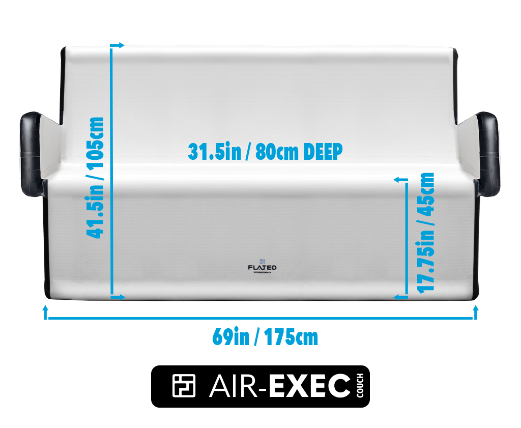 - Compact Storage: When deflated, the Air-Exec Couch packs down to a minimal size, making it easy to store in small spaces or pack in a car trunk (or frunk), closet, or RV.