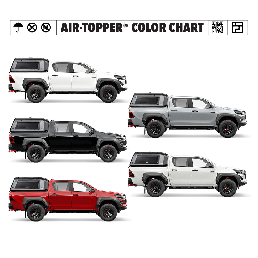 The shorter mid-size short bed Air-Topper® was designed to fit 5 ft beds on the Toyota Hilux, Ford Ranger, Honda Ridgeline and Nissan Frontier.