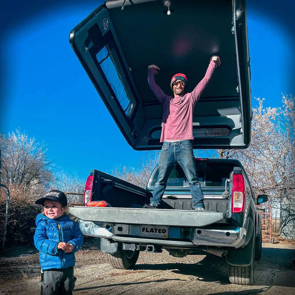 The Air-Topper® eliminates installation and storage hassle providing a versatile shell for your truck lifestyle. When you don’t need it, deflate, roll up, and store in the closet or garage. Tool-less installation for an easy set up, the topper comes with everything you need to get inflated, and get going. Using the Air-Topper® in combination with the FLATED® Air-Deck® will turn any truck into a happy camper. Weighing in at less than 50 lbs, this shell makes you free to vehicle convert at will. Simple and structural.